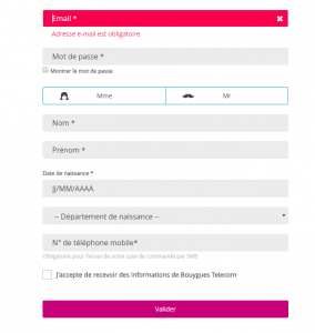 Prendre un abonnement Bouygues : la création du compte (étape 5)